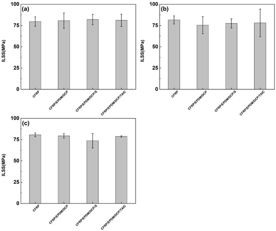 The ILSS of CFRP. (a) 160 °C, 20 min. (b) 160 °C, 30 min. (c) 160 °C, 40 min.