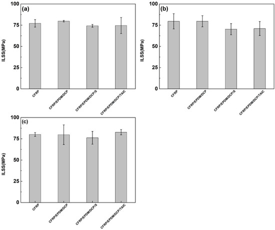 The ILSS of CFRP. (a) 160 °C, 1 h. (b) 170 °C, 1 h. (c) 180 °C, 1 h.