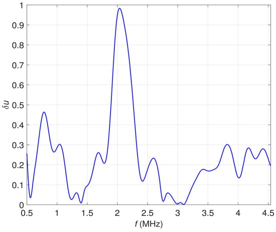 Relative voltage changes δu caused by the material influence plotted as a function of the excitation frequency f.