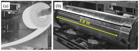 (a) Hot steel coil being wound, showing the harsh conditions of steel manufacturing. (b) Image of a wrapper roll. Adapted with permission from [7]. 2013, ASM International.