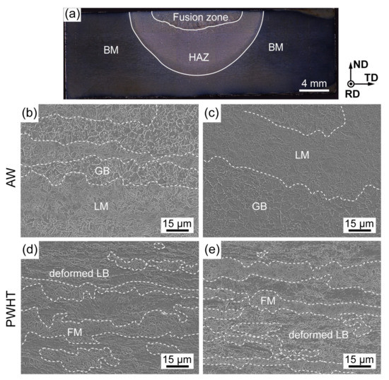 3.2. Microstructure Evolution of HAZ during Welding and PWHT