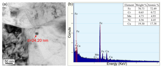 (a) TEM bright field morphology and (b) EDS result of coarse CRPs (~10 nm) in the partial austenitizing zone of PWHT joint.