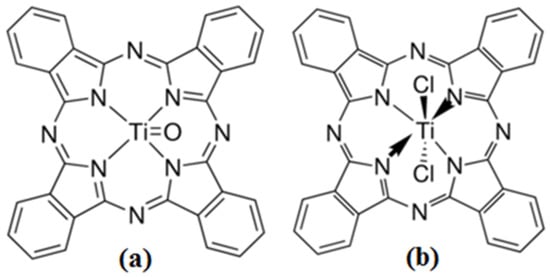 (a) Titanyl phthalocyanine (TiOPc) and (b) titanium (IV) phthalocyanine dichloride (TiCl2Pc).