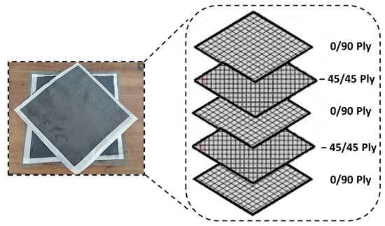 In this investigation, 200 g/m2 of 31-layered 3K carbon fibre with a 0°/90° orientation was used with a bisphenolic-based Vinyl Ester Resin Epovia RF-1001 matrix to make a 230 × 230 × 8 mm3 multidirectional quasi-isotropic [0°/90°/+45°/−45°] specimen of CFRP by using the hand lay-up method. The mechanical properties of T300 carbon fibre are shown in Table 1.