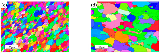 3.3.1. Grain Size and Misorientation Angle Distribution Statistics