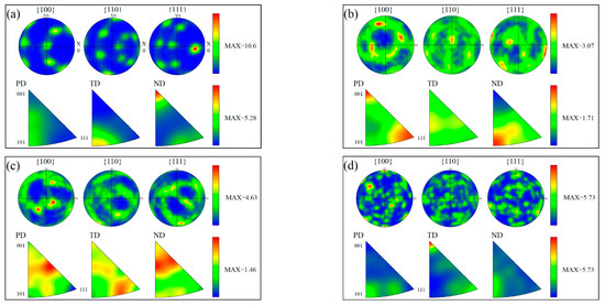 - Doherty, R.; Kashyap, K.; Panchanadeeswaran, S. Direct observation of the development of recrystallization texture in commercial purity aluminum. Acta Met. Mater. 1993, 41, 3029–3053. [Google Scholar] [CrossRef]