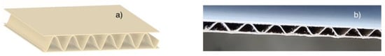 Structure (a) and cross-section (b) of corrugated cardboard sample used for this study.
