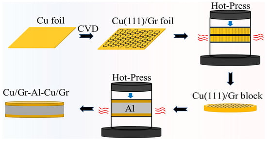 Schematic diagram of the Cu/Gr-Al-Cu/Gr preparation method.