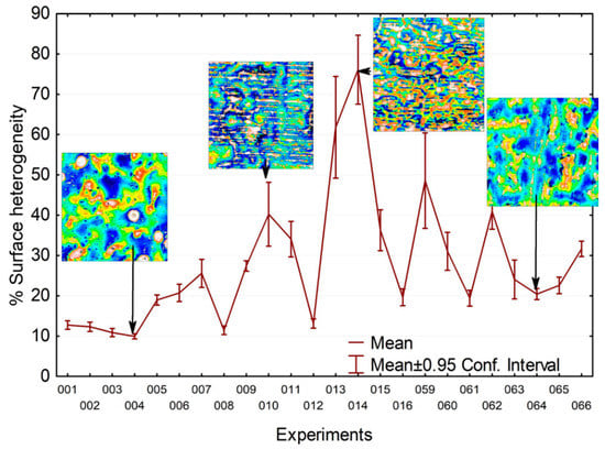 A graph of the percentage of surface heterogeneity for all samples of the experimental design showed in Table 1.