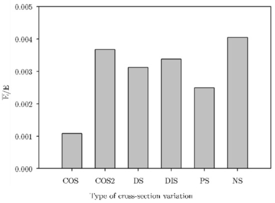 Cross-section variation: Type of variation (a) Cosine (COS), (b) Cosine2 (COS2), (c) Double Slope (DS), (d) Double Inverted Slope (DIS), (e) Negative Slope (NS) and (f) Positive Slope (PS).