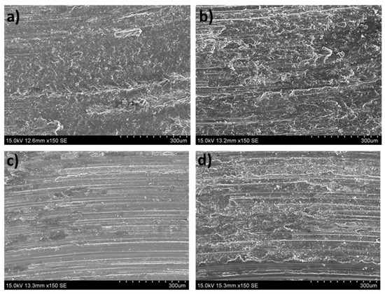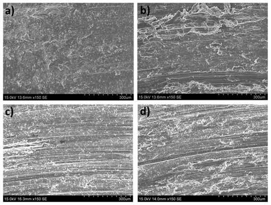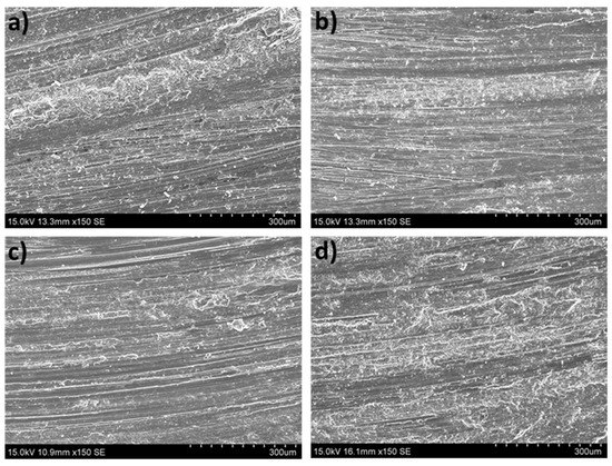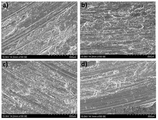 Furthermore, H. Q. Sun et al. [23] determined that the grain refinement strengthening effect improved the wear resistance when they studied the wear behavior of the nanocrystalline layers generated by surface mechanical attrition treatment (SMAT) on an AZ91D alloy. F. Mert [24] also concluded that the mechanical strength was directly related to the grain size, similar to the hardness according to the Hall–Petch equation. For this reason, the refinement of the grains led to higher hardness, thus improving the wear resistance.