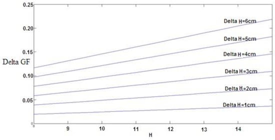 As shown in Table 4, the coefficient H2 was equal to 0.00122. Therefore, if the change in fracture energy for thickness (H), holding other factors fixed, is considered, the equation would show the fracture energy change value by thickness change (which is plotted for changes from 1 to 6 cm in Figure 5). These diagrams can be used for optimal design and economic evaluation. However, considering fiber dosage coefficients, each 1% increase in the amount of fiber increases the fracture energy by 0.09. To investigate the effect of two variables, thickness and fiber dosage, on fracture energy, considering that the units of these two variables are not the same, the effects of these variables cannot be compared with each other according to their coefficients. For this purpose, the coefficients must first be standardized so that it is possible to compare. The values of these standard coefficients are presented in the last column of Table 4. As can be seen, the higher the value of the coefficient H2, the greater the effect of the thickness variable (H) relative to the fiber dosage on the fracture energy.