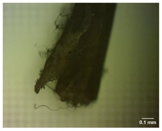 After the tests, the cross-sectional area of the sample was broken and the tip of the fiber was examined.
