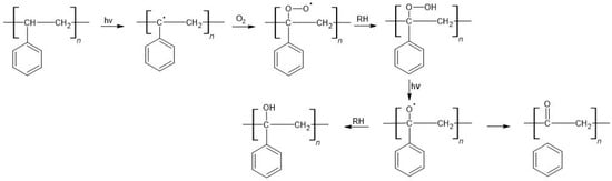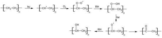 | PP | Photodegradation | Formaldehyde, acetaldehyde, 2-propynyl, hydroxypropyl, acetone, 2-propenyl, butanal, 4-pentyn-1-olate, 4-pentyn-1-olate, (2-ethoxyethyl)oxonium, and acetylacetonate | [57] |