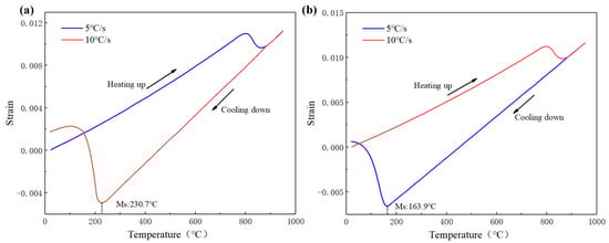 Dilatometric curves of different carbon content: (a) 0.5% carbon; (b) 0.8% carbon.