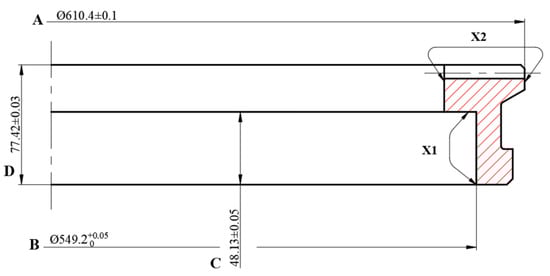 Figure 16 shows the correlation law between the dimensions of the four key positions of the gear and the loads. For positions A and B the diameters decreased without the die constraint. Under the press load, the diameter of position A increased compared with the initial value, and with the increase of the load the diameter of position A gradually increased and tended to be stable. When the press load was 14.2 kN, the diameter at position B was larger than the initial diameter. With the increase of the load, the diameter at position B was gradually smaller than the initial value and tended to be stable. The diameters that changed at positions A and B showed that under the load of the upper die, the outer tooth top expanded outward and the rib shrunk inward. The inner ring die could effectively prevent the shrinkage deformation of the gear rib plate. For the axial dimensions at C and D, the dimensions were larger than the initial dimensions with or without the die, and the gear teeth were warped in the axial direction. The dimension at C increased with the increase of the load and tended to be stable gradually. The size of C could be effectively reduced without the die under a low load. With the increase of the load, the size of C gradually increased. Under the load, the top of the tooth changed into a saddle shape. During loading, the dimension of D was smaller than that without the die. Reasonable selections of the press load could effectively control the dimensions of D. The above analysis results showed that the die could effectively control the deformation of the face gear. The deformation of the gear by different loads was related to the position of the gear. In actual production, the load of the die should be reasonably selected according to the size requirements of each position.