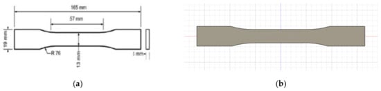 (a) Dimensions of ASTM D638 Type I and (b) 3D model of sample.