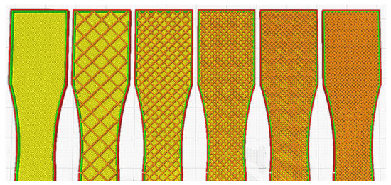 - Pandzic, A.; Hodzic, D.; Milovanovic, A. Effect of infill type and density on tensile properties of pla material for fdm process. Ann. DAAAM Proc. Int. DAAAM Symp. 2019, 30, 545–554. [Google Scholar] [CrossRef]