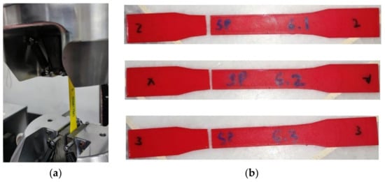 (a) Specimen set up in the universal testing machine and (b) sample of specimen 6 after testing.
