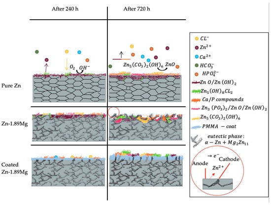 - Hybasek, V.; Kubasek, J.; Capek, J.; Alferi, D.; Pinc, J.; Jiru, J.; Fojt, J. Influence of model environment complexity on corrosion mechanism of biodegradable zinc alloys. Corros. Sci. 2021, 187, 109520. [Google Scholar] [CrossRef]