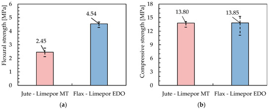 Figure 15 shows the results of flexural and compressive tests carried out according to the procedure described in Section 2.5.
