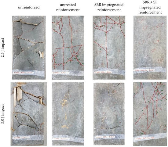 | 5.0 J | SBR + SF impregnated reinforcement | 3.55 | 21.26 | 1658.54 | 0.92 |