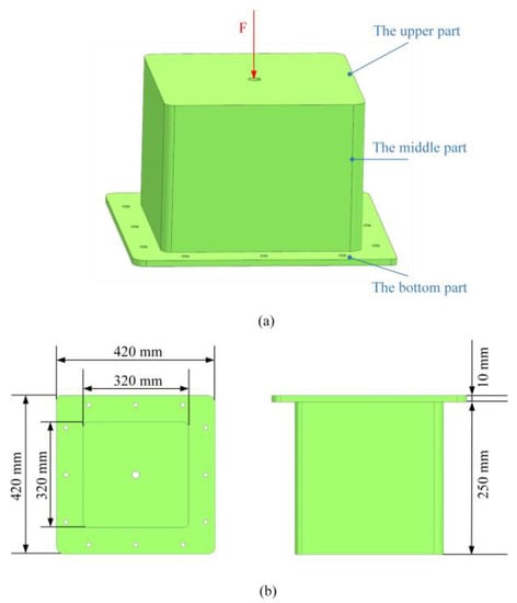 The support structure with load and boundary conditions and geometric dimensioning. (a) Load and boundary condition and (b) geometric dimensioning.