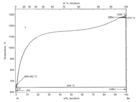- Murray, J.L.; Kahan, D.J. The Al-Be (Aluminum-Beryllium) system. Bull. Alloy Phase Diagrams 1983, 4, 50–55. [Google Scholar] [CrossRef]