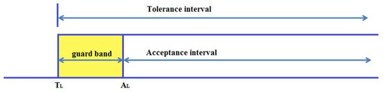 The second important interval is the acceptance interval [AL, AU], where AL and AU are the lower and upper limits of the acceptance interval, respectively. The acceptance interval and the tolerance interval can be in a variety of relationships with one another [32]. In order to minimize the consumer’s risk, in this research the acceptance interval has been placed within the tolerance interval, Figure 1.