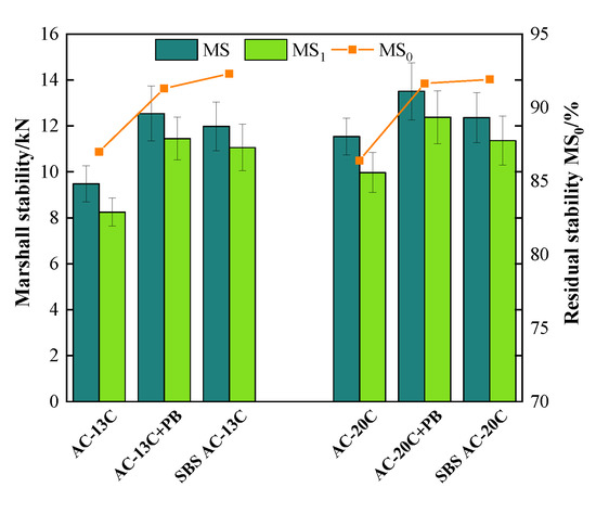 - The PB modifier can not only improve the anti-water damage performance indexes of the residual stability and tensile strength ratio of mixtures, but can also strengthen the absolute values of the strengths, presenting a better water damage resistance.