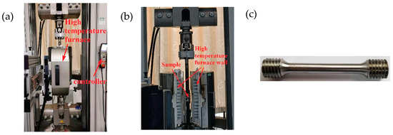 A UTM5105-G electronic universal testing machine was used for the notch tensile test, where the maximum test force was 100 KN. The tensile rate of the test was 1.8 mm/min, and the strain rate was 1 × 10−3 s−1. The test piece was stretched to the end of fracture.