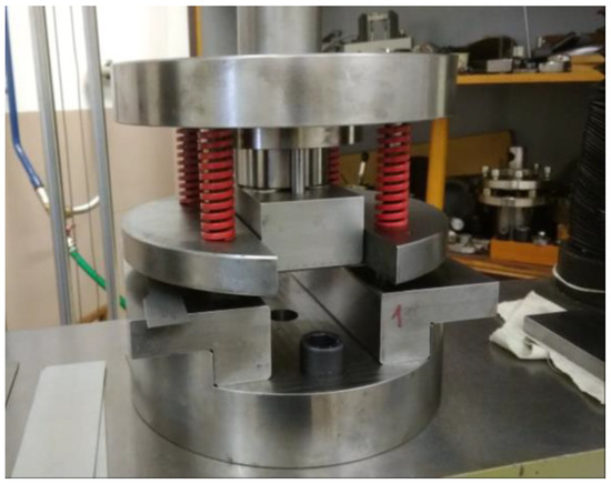 The bending tool designed for springback investigation is positioned in the TIRAtest2300 machine.