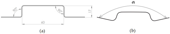 Springback is usually defined as a negative phenomenon that occurs after the forming operation, external force removal. It changes the dimensions and geometry of the formed part, which has an undesirable impact on the part accuracy and can lead to assembly problems [1,2,3]. Especially in the automotive industry, springback can lead to production errors, where the car body mostly consists of a large amount of sheet metal pressings with different mechanical properties which are joined together by welding, clinching, glueing, etc., using programmed manufacturing robots [4,5,6]. Steels with higher values of yield strength display more springback compared to mild steels with lower values of yield strength, because of a greater portion of elastic deformation in total deformation [7]. These higher strength steels are usually used for structural parts where high-strength characteristics are desirable, such as in car body design, for A and B pillars, front rails, and reinforcement beams in doors and roofs [8,9,10].