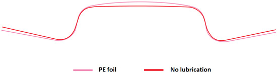 The friction has a significant impact on the formability of steel sheets. The reduction of friction has a positive impact on the formability of metal sheets in general [26,27,28]. The work of Evin and Tomas [26] aimed to study the effects of Fe content in the Zn-Fe coating of steel sheets on friction during forming. They tested the formability of steels in the dry condition, with Anticorit lubricant and microtene foil as a lubricant. Their results suggest that the Fe content of the Zn-Fe coating should range from 7% to 12%. Srinivasan et al. [29] studied the effects of friction on the springback of steel sheets in air bending. Their results suggest that a decrease in friction increases the springback and reduces the bending force.