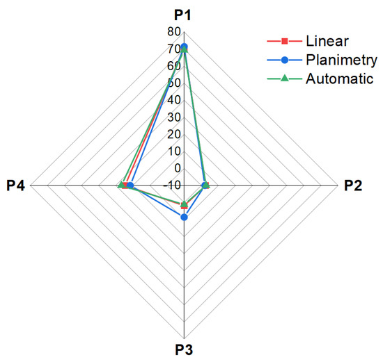 Figure 18. Spider chart presenting the results of image analysis obtained using traditional (linear and planimetry) and automated methods.