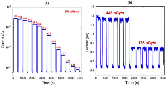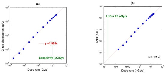 - Li, Y.; Chen, H.; Hao, Z.; Li, Z.; Wu, X.; Li, X.; Zhang, J. Direct X-ray Detectors Based on PDMS Films With Low Detection Limit and High Flexibility. IEEE Electron Device Lett. 2022, 43, 1997–2000. [Google Scholar] [CrossRef]