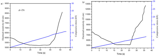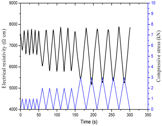 The cement-based composite will undergo volume deformation or even failure under pressure, which will affect the internal porosity and produce microcracks. In addition, the contact between conductive phases will also change. These factors will eventually cause changes in resistivity.