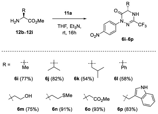 Synthesis of chiral 1,2,4-triazin-6(1H)-ones 6i–6q derived from nitrile imine 1a; scope of α-amino esters.