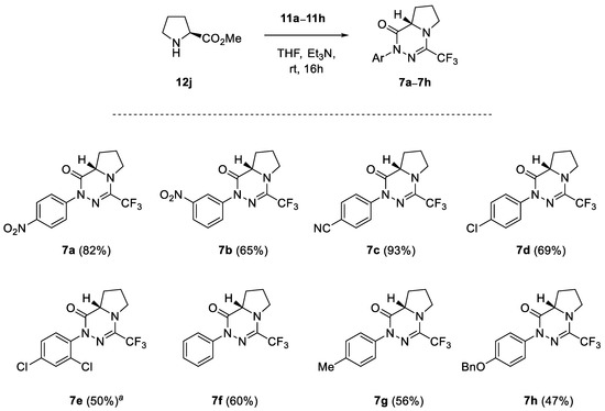 Synthesis of l-proline-derived bicyclic 1,2,4-triazinones 7a–7h; crude reaction mixture was heated at 60 °C for 3 d.