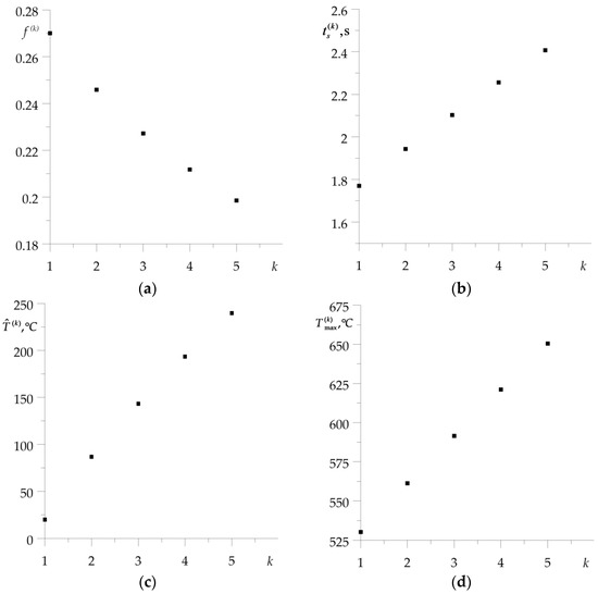 where —initial temperature of the system, and the corresponding dimensionless temperature functions are marked with the superscript ‘’. Typically, dependencies of the type (6)–(10) are obtained as a result of processing appropriate experimental data [9].