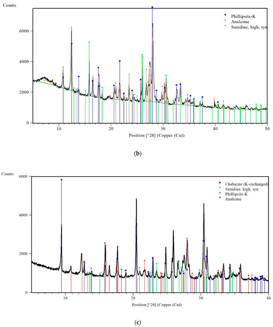 - Osacký, M.; Pálková, H.; Hudec, P.; Czímerová, A.; Galusková, D.; Vítková, M. Effect of alkaline synthesis conditions on mineralogy, chemistry and surface properties of phillipsite, P and X zeolitic materials prepared from fine powdered perlite by-product. Microporous Mesoporous Mater. 2020, 294, 109852. [Google Scholar] [CrossRef]