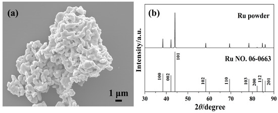 FE-SEM image and XRD pattern of the original Ru powder (a,b).