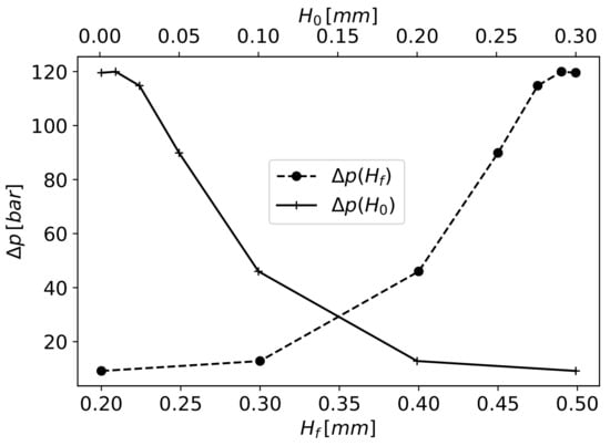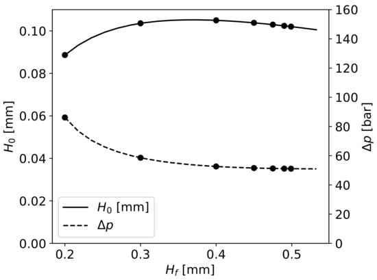 Considering the simplified model previously presented in the system of Equation (12), and solving the first equation to , it is possible to define the gap’s height as a function of and :