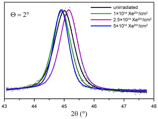 | 2.5 × 1014 Xe20+/cm2 | 2.8646 (1) | −0.0005 (2) |