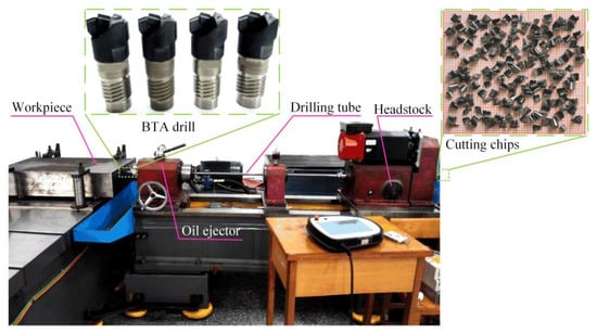 - Haddag, B.; Nouari, M.; Moufki, A. Experimental analysis of the BTA deep drilling and a new analytical thermome-chanical model for assessment of cutting forces and BTA drill design. Int. J. Adv. Manuf. Technol. 2020, 106, 455–469. [Google Scholar] [CrossRef]