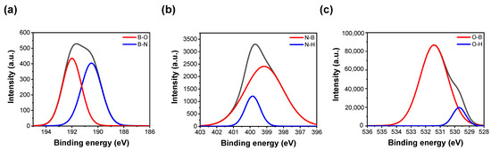 X-ray photoelectron spectroscopy spectra of BN. (a) B1s; (b) N1s; (c) O1s.