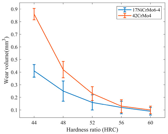 Wear volume diagram under different hardness matching.