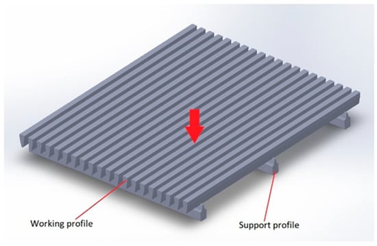 Welded slotted screens [], as shown in Figure 1, represent some of the most technologically advanced slotted screen designs. The technology of resistance welding of specially profiled working wires to support wires allows for the attainment of highly precise slot dimensions, which play a crucial role in numerous solid–liquid filtration processes [,,].