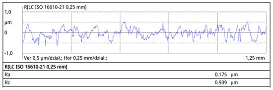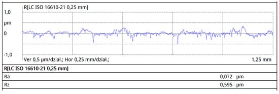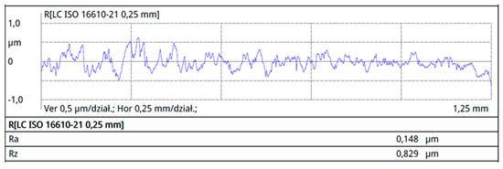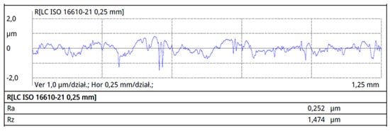 Surface roughness tests were conducted on the surfaces marked with an asterisk in Figure 2, perpendicular to the rolling direction. The results of surface roughness measurements for the individual profiles are presented in Figure 7, Figure 8, Figure 9 and Figure 10.