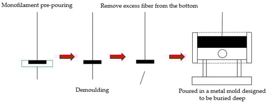 Schematic diagram of monofilament fiber-asphalt pullout specimen production.